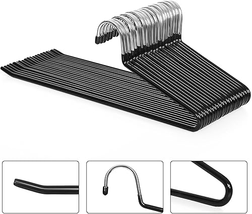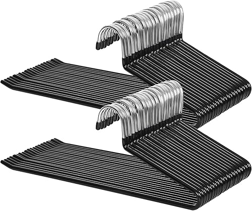 SONGMICS Cintres Pantalon en métal, Lot de 50, Longueur de 38 cm, Solide Diamètre 5 mm, Cintres Chromé, Revêtement antiglisse en PVC, Antidérapant, Peu encombrant, Noir CRI00450