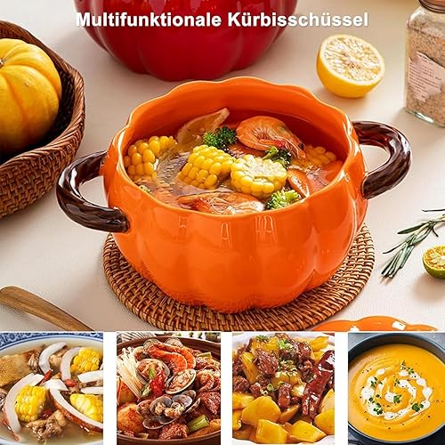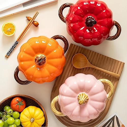 Mini cocotte avec couvercle, 17 cm - 1,5 l - En céramique - Avec cuillère - Pour four, lave-vaisselle, micro-ondes - Jolie sauteuse (orange-02)