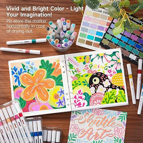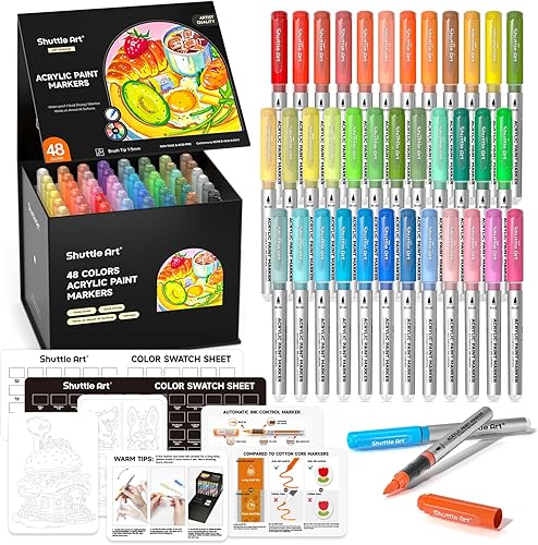 Shuttle Art Feutre Acrylique à Encre Automatique, 60 Couleurs Marqueurs Peinture Acrylique à Pointe Pinceau sur Céramique Toile Plastique, Acrylic Paint Marker pour Calligraphie, Bricolage