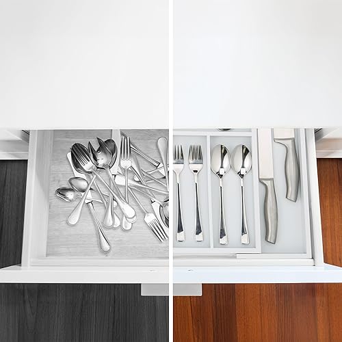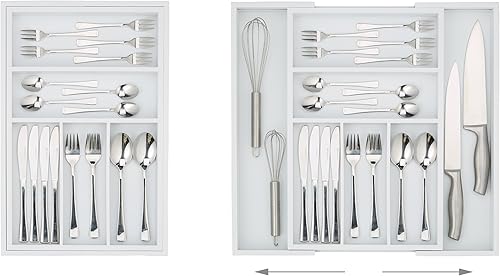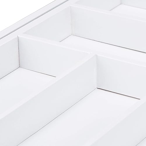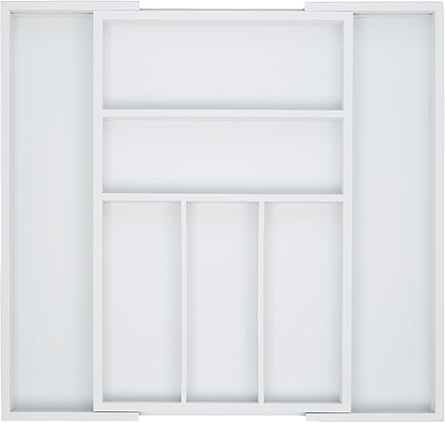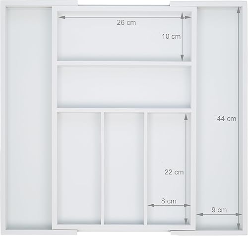 Relaxdays 10023244, Blanc Boîte à Couverts Tiroir, Extensible, Largeur Variable, 5-7 Casiers, Organiseur Bambou, HLP 5x48x46cm