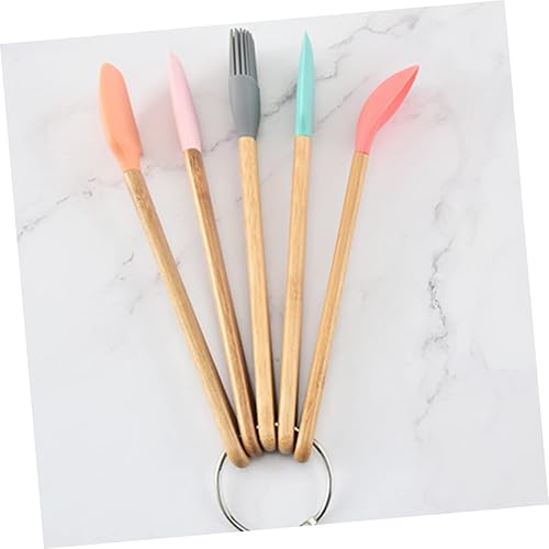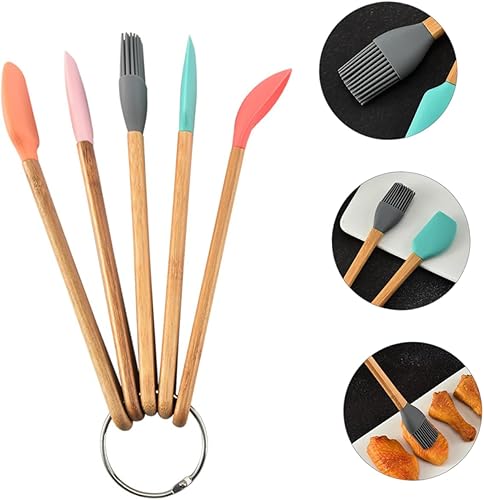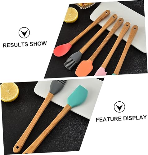 GREENADSCAPE Ensemble De 5 Ustensiles De Cuisine En Silicone Pour Garçons Filles Avec Poignées En Bois
