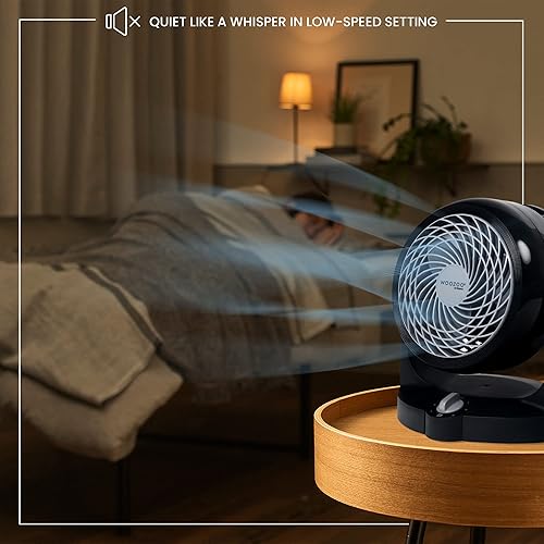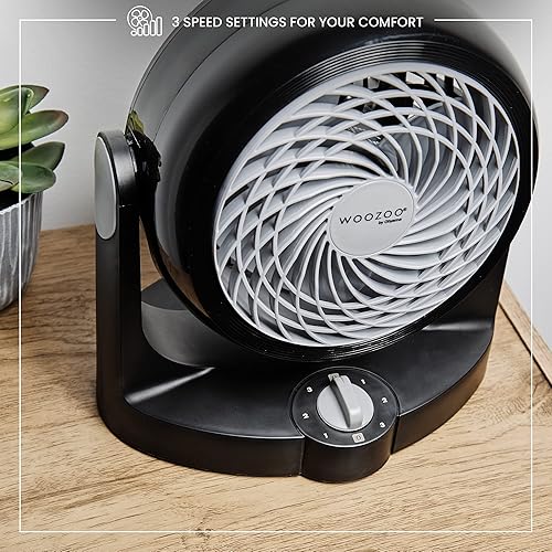Woozoo, Ventilateur de table silencieux, puissant & portable, 13m², Portée 13m, Inclinaison verticale, Bureau - Woozoo PCF-HD15N - Noir