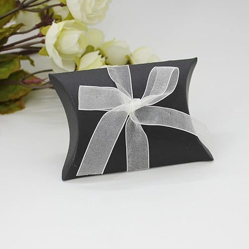 Lot de 50 boîtes à dragées en papier kraft noir avec ruban pour anniversaire, fête prénatale, remerciement, Halloween