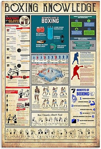 Nuboxx Boxing Knowledge - Plaque en métal - Affiche d'anatomie des combattants de boxe - 20,3 x 30,5 cm