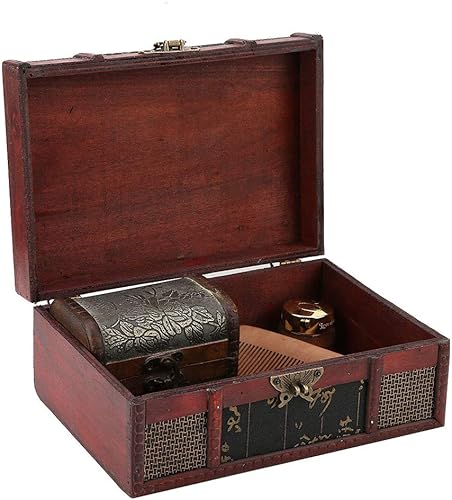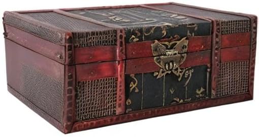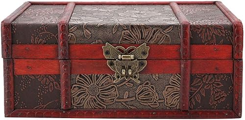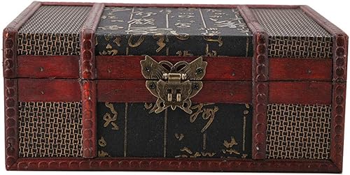 Wakects Boîte de Rangement en Bois Vintage Petite Taille Organisateur de Bijoux Livre boîte de Rangement rétro boîte à Bijoux en Bois décorative Vintage Coffre au trésor(Style Chinois avec Serrure)