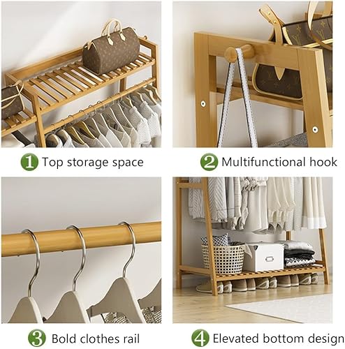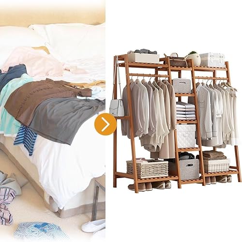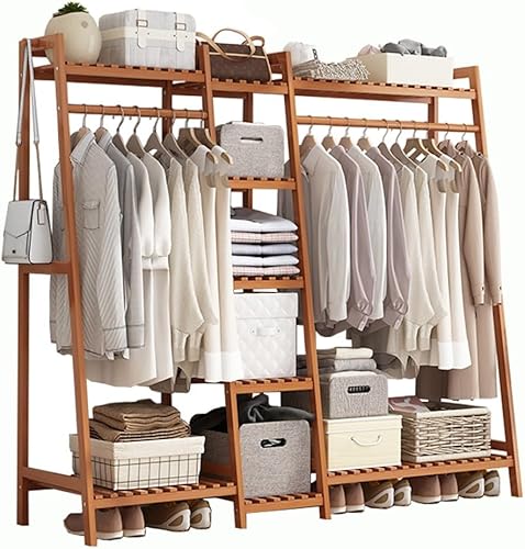 Portant Penderie à Vêtements en Bambou, Multifonction Armoire Ouverte Penderie avec 9 Etagères de Rangement, pour Manteaux Chapeaux Sacs, pour Entrée Couloir 160x40x140CM