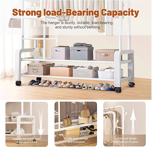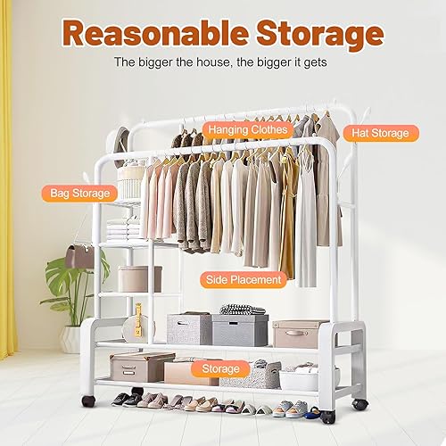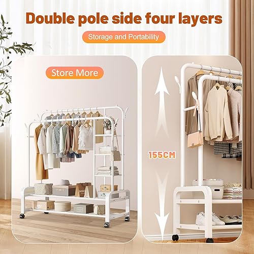 MONKLE - Portant a Vetement, Portant vêtements roulettes, Portant vetement solide 4 couches de rangement sur le côté(blanc)