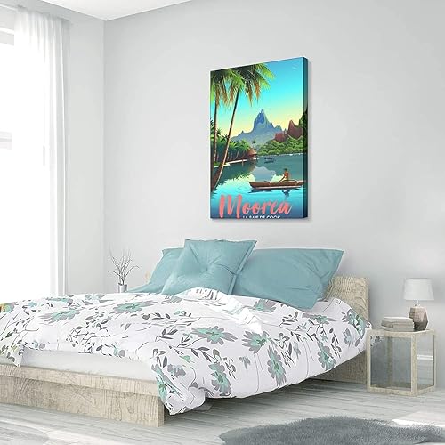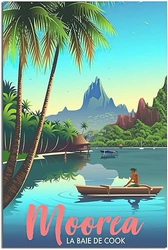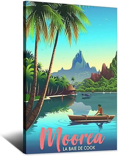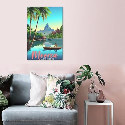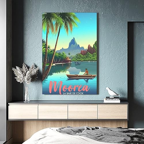 YONGCAI Poster vintage Moorea Cook's Bay avec aviron sur toile pour décoration de chambre à coucher
