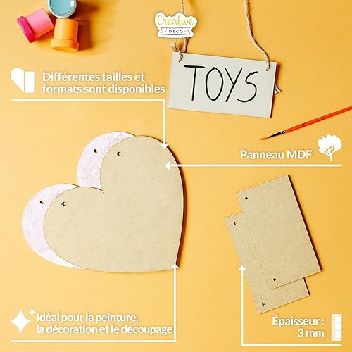 Creative Deco 10 x MDF Plaques Signes Forme Rectangulaire | 150 x 80 x 3-4 mm | Bords Arrondis | Découpes Non Peints | Decoration à Accrocher | pour Cadeau Peinture Loisir Pyrogravure Travaux Manuels
