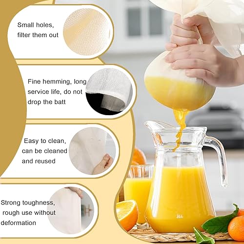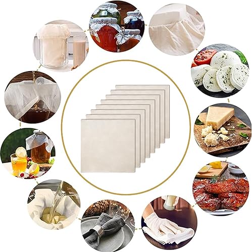 WYRGQIQN Etamine Alimentaire, Toile à Fromage, 8 chiffons en coton réutilisables pour presser le tofu, filtrer le lait de noix et filtrer les aliments, aide de cuisine idéale
