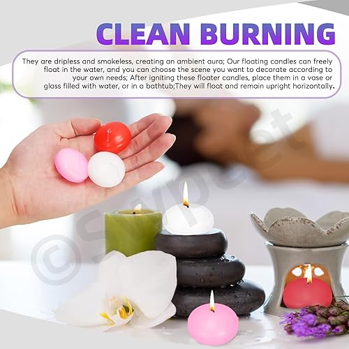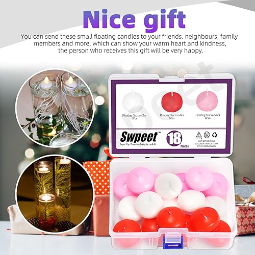Swpeet Lot de 18 bougies flottantes blanches non parfumées de 3,8 cm - Disques flottants blancs - Sans gouttes - Roulées à la main - Cire de paraffine - Mèches en coton - Pour centres de table,
