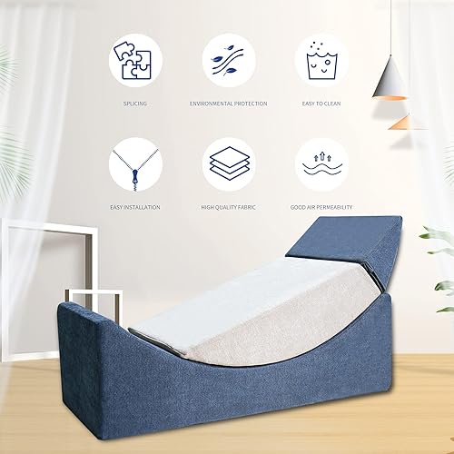 strusery Coussin de dossier pour lit - Coussin de lecture en forme de cale pour soutien du dos, coussin de lit confortable pour s'asseoir, velours amovible (bleu)