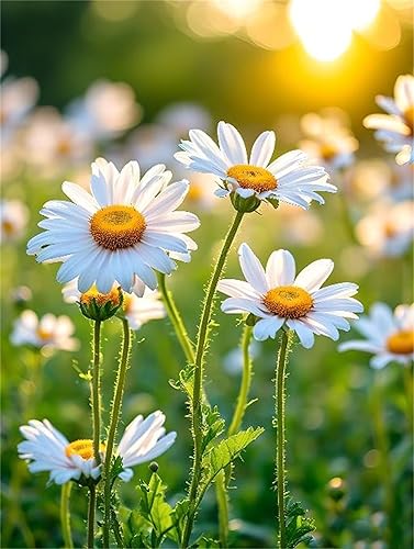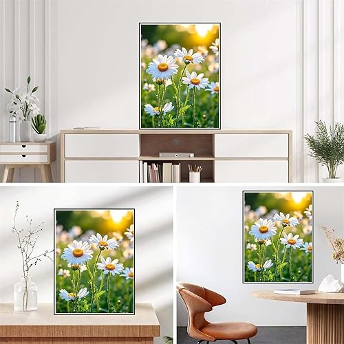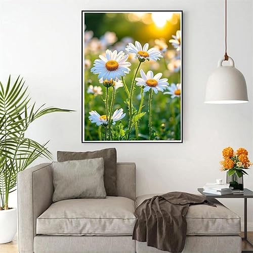WEEPEF Marguerite blanche Peinture Diamant Adulte Enfant, 5D Diamond Painting Kit Complet Point de Croix Painting Diamant, DIY Broderie Diamant Kit Complet pour Décoration Maison Cadeau 30x40cm P-147