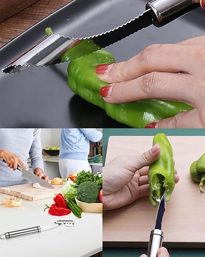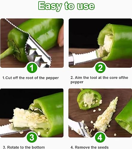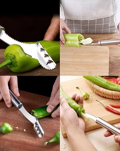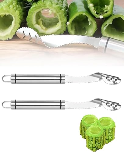 KGDUYC 2PCS Vide-Courgettes, vide courgette, couteau vide courgette, Vide-pomme en Acier Inoxydable Vide-poivre avec Bord Dentelé pour Chilli, Jalapenos, Piments, Poivrons, Courgettes, Concombres