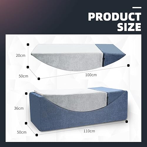 CCLIFE Matelas lit Fauteuil futon Pliable Pliant Chaise de Sol Pliable Matelas Pliant Sofa 110×50×36 CM, Couleur:Bleu & Gris