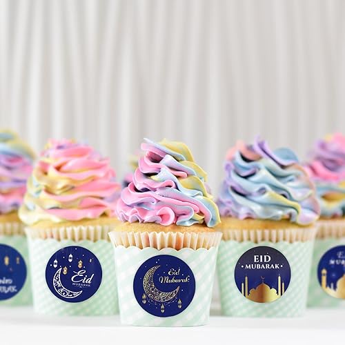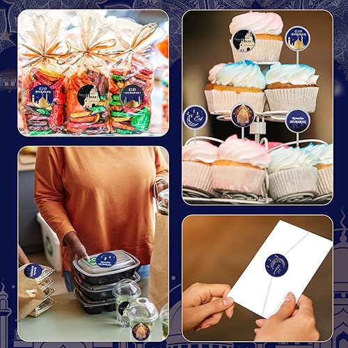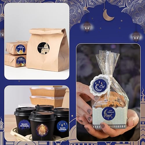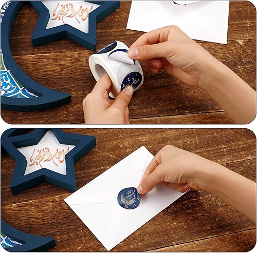 500pcs Autocollants Eid Mubarak, Autocollants Ramadan 3,8cm Décoration Musulmane Islamique Étiquettes Ramadan pour Décoration Fête de l'Aïd Fournitures de Fête du Ramadan(Style Bleu et Noir)
