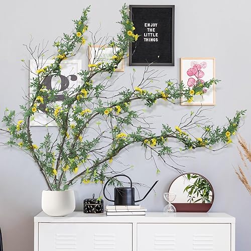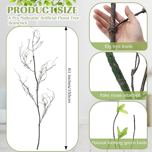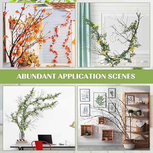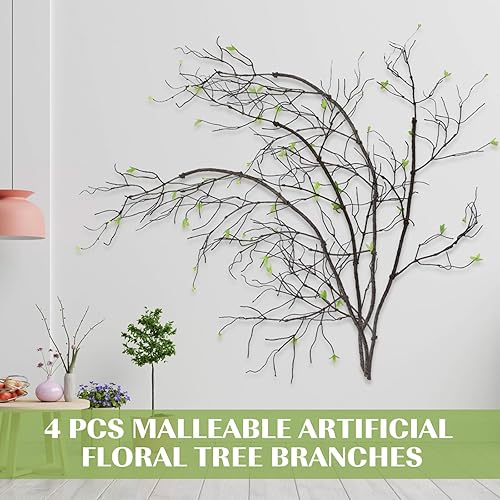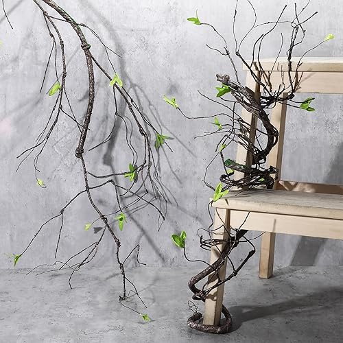 Giegxin Lot de 4 branches d'arbre artificielles malléables - Longueur totale : 610 cm - Tronc d'arbre - Branches d'arbre pliables - Fausses plantes à suspendre avec brindilles de vigne et feuilles