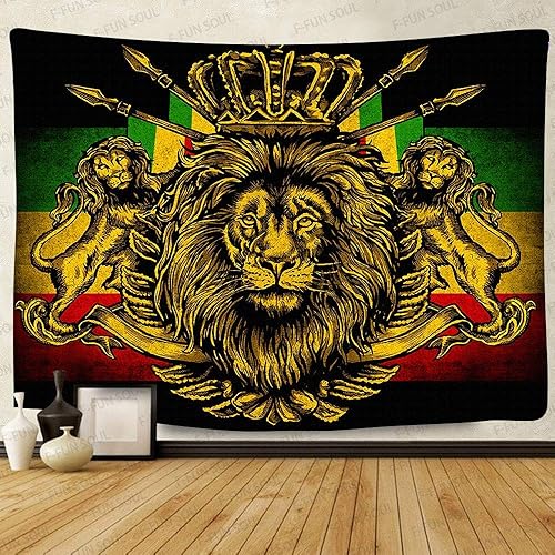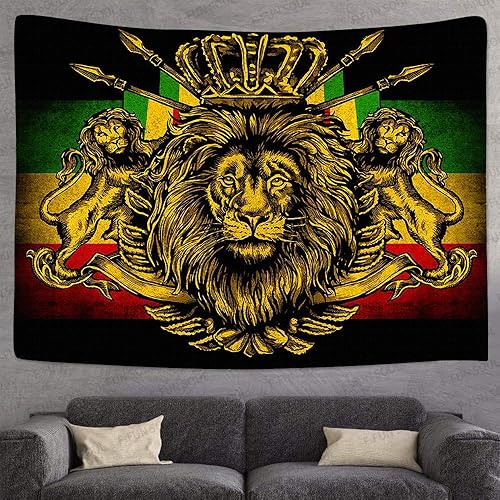STCREE Grande Tapisserie Rasta en Flanelle Douce de 203,2 x 152,4 cm, Drapeau Couronne de Lion, Art Hippie, Tentures Murales à Suspendre pour Salon, Chambre à Coucher, Bannière Décorative