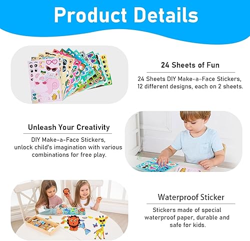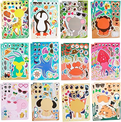 24 Pièces Make-a-Face Feuilles D’Autocollants, Autocollants Pour Enfants, DIY Feuilles D'Autocollants D'Animaux Marins, Gommettes Autocollantes Pour Scrapbooking, Fêtes Et Projets De Base Créatifs
