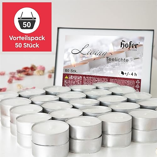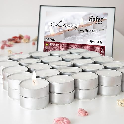 Lot de 50 bougies chauffe-plat HOFER - L'original - Petites bougies - Sans parfum - Bougies pour décorer, fête, profiter, se détendre
