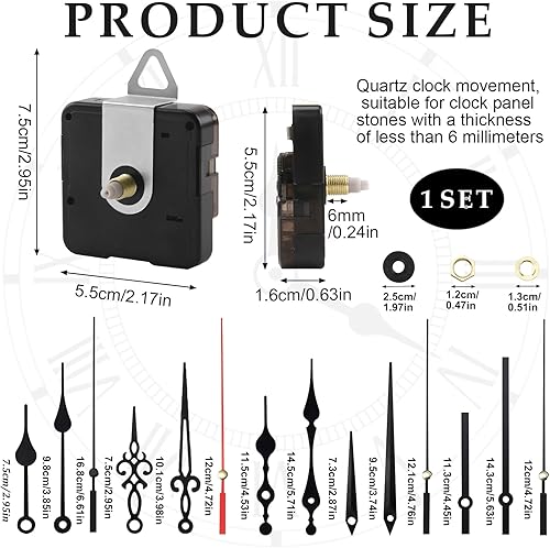 Mouvement Mécanisme horloge murale 2 pièces, mouvement silencieux à quartz avec 5 aiguilles d'horloge, pour pièces de réparation d'horloge murale de remplacement (13 mm)
