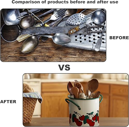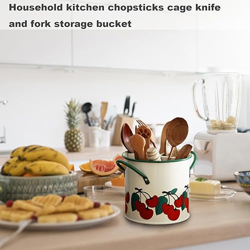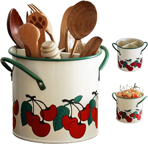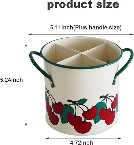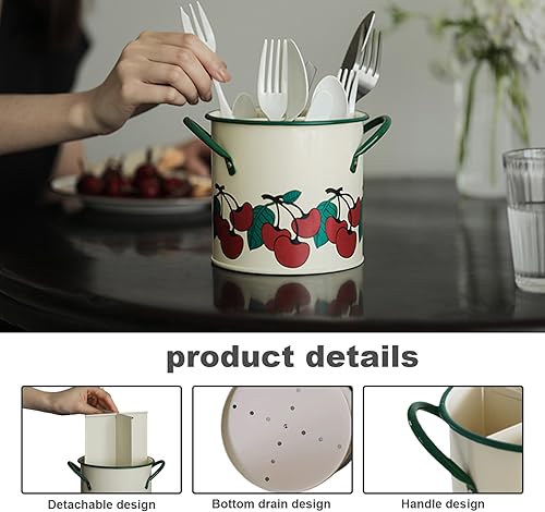 Porte-ustensiles de cuisine caddie ustensile peint en cerisier vintage avec diviseur détachable 4 compartiments en fer organisateur d'ustensiles avec trou de la cuisine rétro à trou de drain