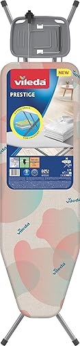Vileda Prestige | Planche à Repasser avec Repose-Fer avec Bandeau réversible | Housse de Table à Repasser en Coton | Transport sécurisé | Grille à Linge
