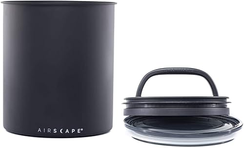 Airscape Boîte de rangement pour café (grains secs de 1,1 kg) – Grande capacité de kilo avec couvercle breveté à libération hermétique pour évacuer l'air pour préserver la fraîcheur - mat noir