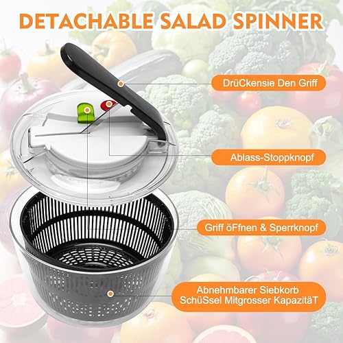 Umllpet Essoreuse à Salade avec Couvercle, 3L Essoreuse à Salade, Type de Presse, Sèche Légumes à Laitue de Cuisine, Essoreuse pour Laver la Salade pour Les Fruits, Légumes, Salade