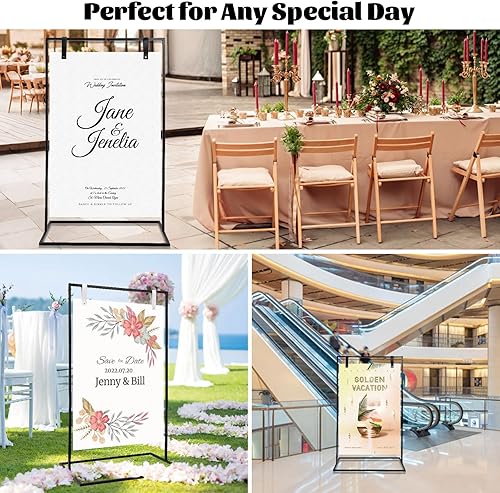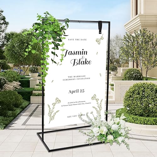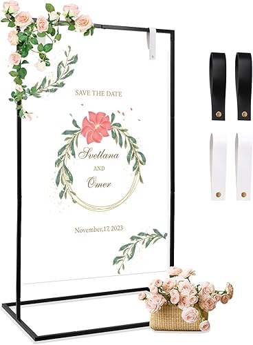 Tefola Présentoir de mariage - 123 x 73 x 53 cm - Chevalet de bienvenue de mariage avec lanières en cuir - Parfait pour les panneaux de bienvenue, les affiches, les fêtes, les présentoirs d'exposition