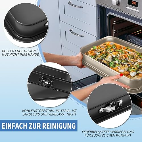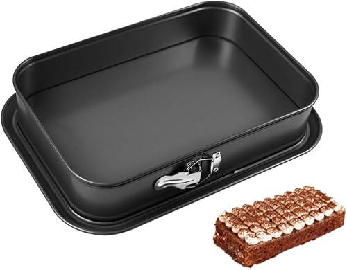 Marrzuplex Moule à charnière rectangulaire avec fond plat, moule tiramisu antiadhésif, facile à nettoyer, moule à gâteau carré, noir
