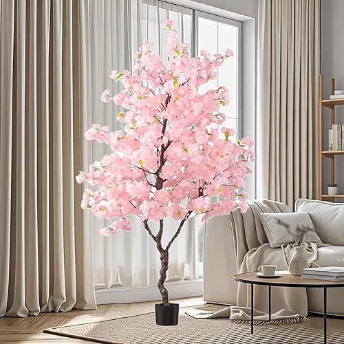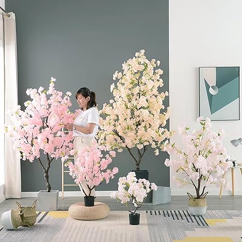 Cerisier Japonais Artificiel Avec Fleurs Roses, Arbre À Fleurs De Cerisier En Fausse Soie Fait À La Main, Fausse Plante Interieur Pour L'intérieur Et L'extérieur Décoration De La Maison Et Du Bureau(P