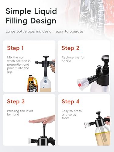 Pulverisateur Mousse Voiture, 2L Pulvérisateur à Pression a Main, Canon a Mousse Voiture, Flacon Pulvérisateur, Pompe À Mousse pour Voiture, Flacon Pulvérisateur Portable pour Nettoyage De Voiture