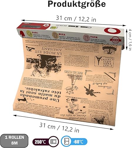 Papier D'emballage Alimentaire, 8m Papier Alimentaire, Papier Emballage Alimentaire, Papier Sulfurisé pour Camping Frites Burger Pizza Pain Sandwich, Blanc