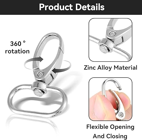 20 pièces fermoirs à pince de homard porte-clés, clips de déclenchement pivotants mousquetons à gâchette pivotants à 360 ° crochets à pression pivotants fermoir à homard en métal (32mm)