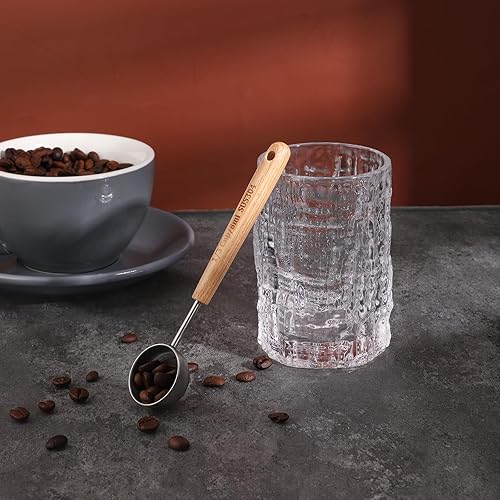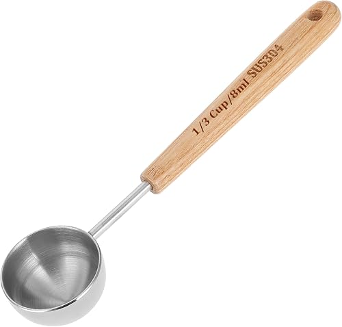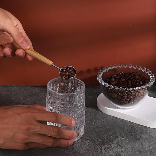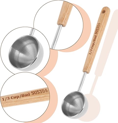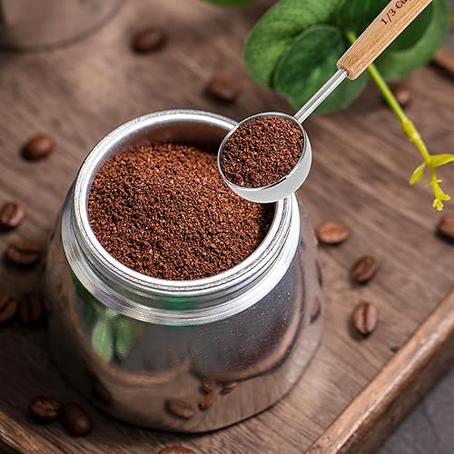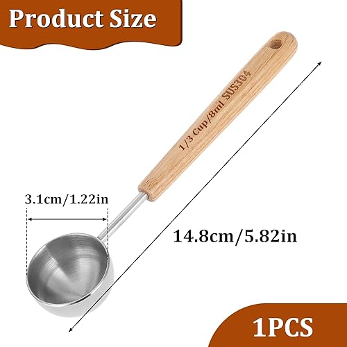Cuillère à café vintage de 8 ml - Cuillère à café moulu en acier inoxydable - Longue poignée en bois - Cuillère à mesurer en métal pour café, thé, miel