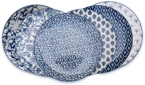 Artime - Lot de 6 Petites Assiettes Bleues et Blanches, Vaisselle avec Motifs, Assiettes en Porcelaine, Assiettes Adaptées au Lave-vaisselle et Micro-onde