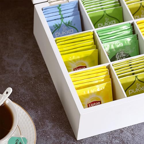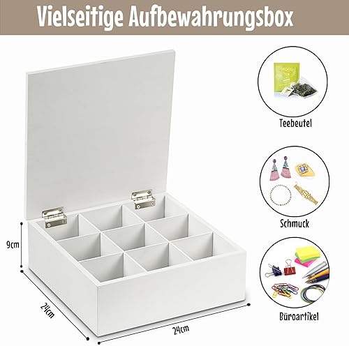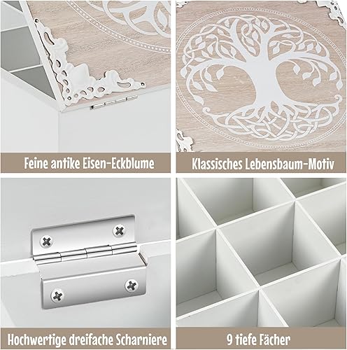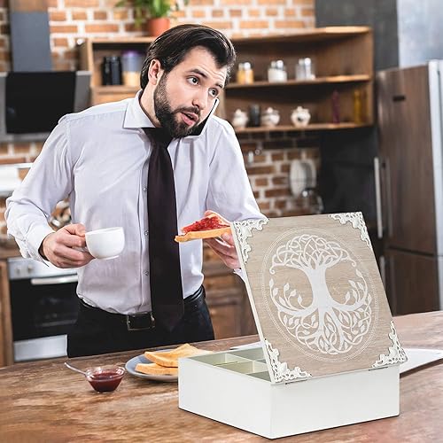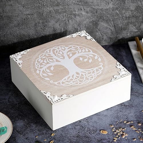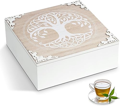 WPAJIRZO Boîte à thé en bois blanc avec motif arbre de vie | Boîte à thé 9 compartiments | Boîte cadeau pour femmes, hommes, amateurs de thé