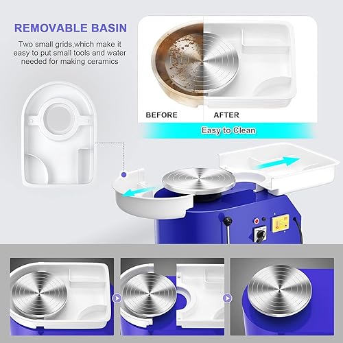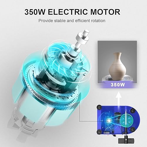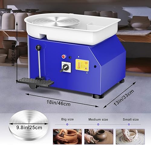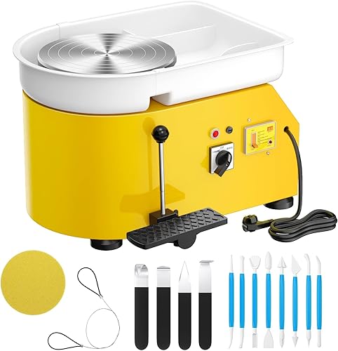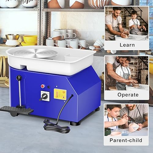 VAYOTOY Tour de Potier,25CM 350W Tour Poterie Kit Electrique de Pédale avec Bassin en ABS Amovible et Plateau Tournant de Machine à Tour Outil d'argile pour Céramique DIY Bricolage