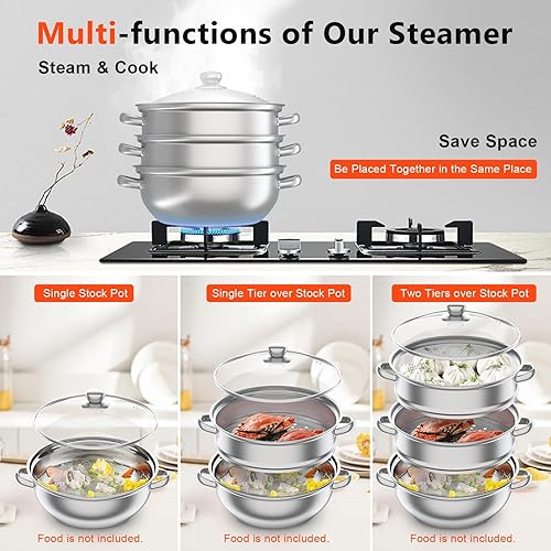 Cuiseur vapeur à 3 niveaux, en acier inoxydable, cuisson des aliments, cuisson à la vapeur, revêtement antiadhésif, 28 cm, convient pour la cuisine, l'induction