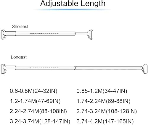 Tringle à rideaux télescopique réglable en métal - 60 cm - 420 cm - Pour fenêtres - À ressort - Séparateurs de pièce - Pas de perçage nécessaire