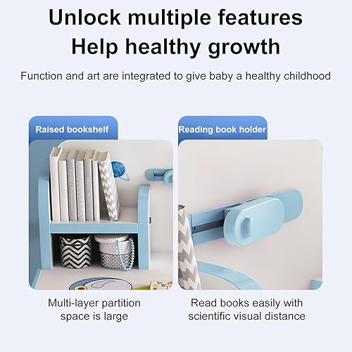 Wizoowip Ensemble de bureau et de chaise pour enfants - Hauteur réglable - Avec tiroir - Bureau élargi - Images de dessin animé - Plusieurs séparations - Table d'apprentissage ergonomique pour filles