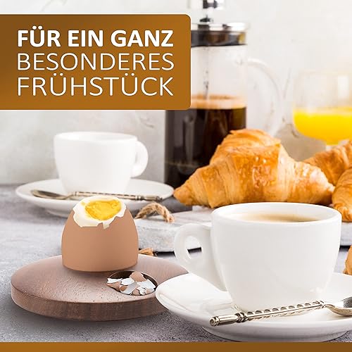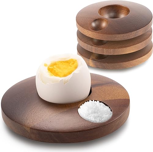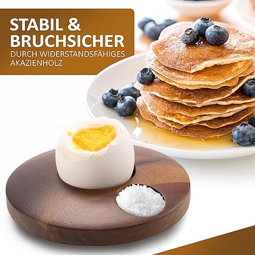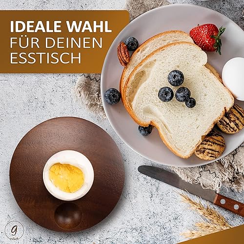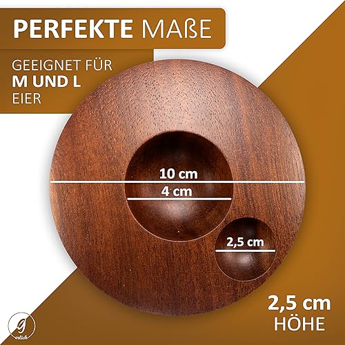 Gerlich® Lot de 4 coquetiers en bois d'acacia - durables, modernes et durables - Coquetiers avec aspect noyer pour un petit déjeuner particulièrement élégant - Idéal pour tous les jours