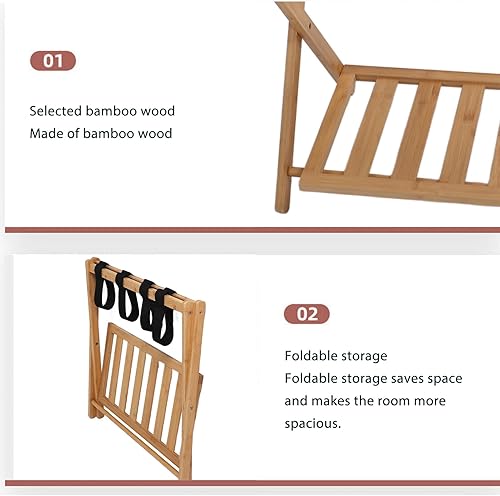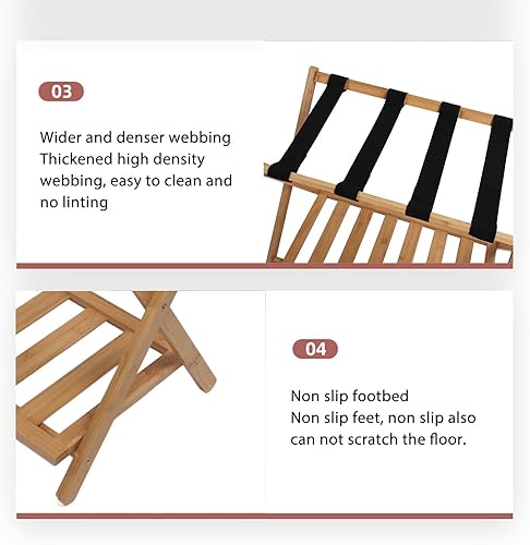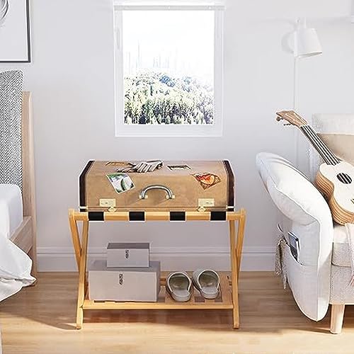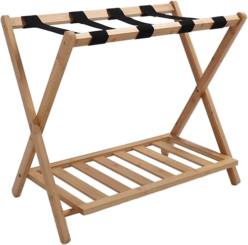 Support à Bagages Pliable, Porte-bagages Pliable , Double Couche, Sangle Dense élargie en Bambou pour la Maison