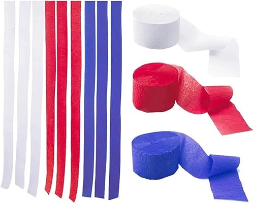 AMEEDA Rouleaux Papier Crêpé Ensemble de Rouleaux de Papier crépon Couleur, Fournitures de fête, décor Mural de Fond de fête d'anniversaire, décor de Salon, Fleur à Tirer(3roll White Red Blue)