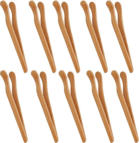 Lot de 4 pinces en bois de bambou pour toast ou pain