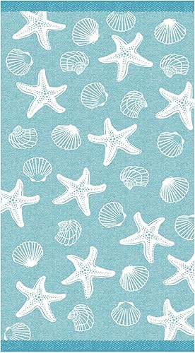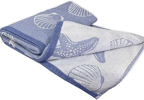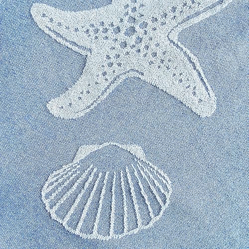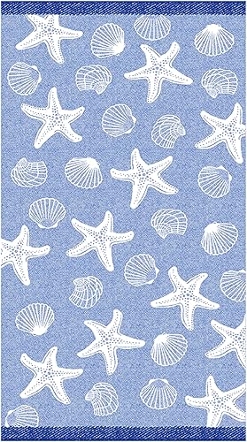 Delindo Lifestyle Serviette de plage Miami - Motif étoile de mer et coquillages - 100 % coton - 100 x 180 cm - Certifié Öko-Tex 100 - Bleu