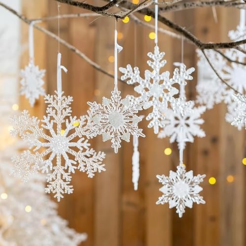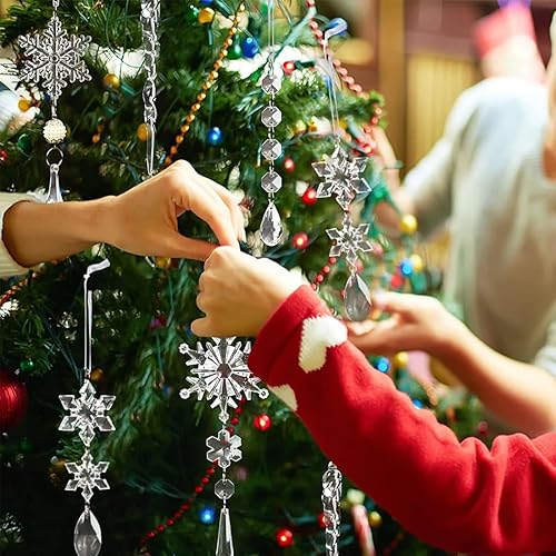 35 Pièces Acrylique Ornements de Flocons de Neige, Hiver Décorations avec 30m Ligne De Cristal,Ornements de Flocons de Neige en Cristal Acrylique pour Fenêtres Cheminée Sapin de Noël
