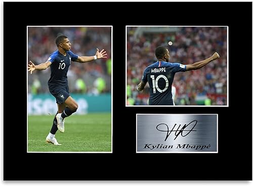 Generic Kylian Mbappe France Player A4 Photo imprimée avec autographe - Photographie de sport signée pour décoration murale - Salle de séjour