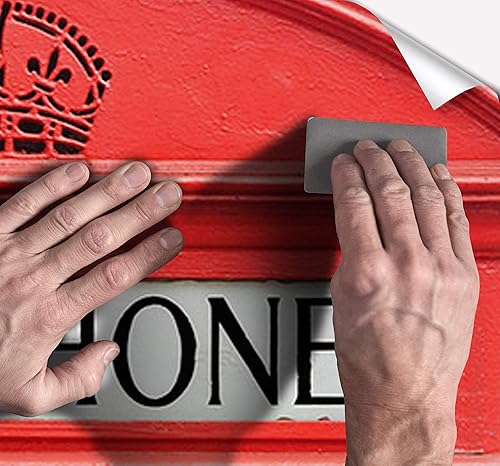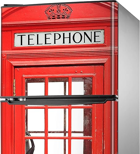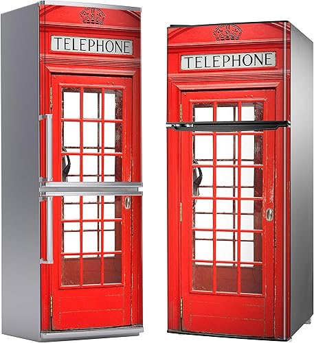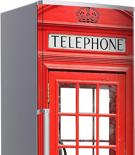 MEGADECOR DECORATE YOUR HOME Vinyle adhésif décoratif pour réfrigérateur, spécial sans bulles, cabine téléphonique britannique rouge (185 cm x 70 cm)